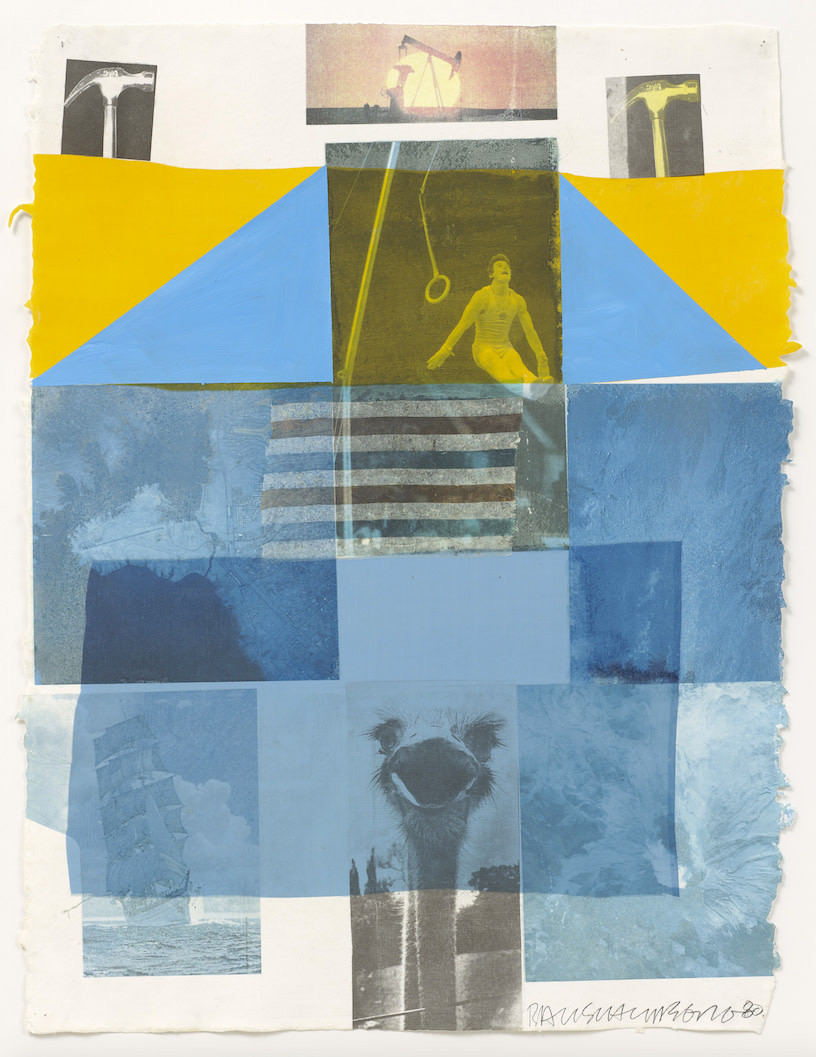 Robert Rauschenberg, Flue, 1980. Solvent transfer, acrylic and collage on paper 80.6 x 62.2 cm/ 31.7 x 24.5 in. [h x w]. |