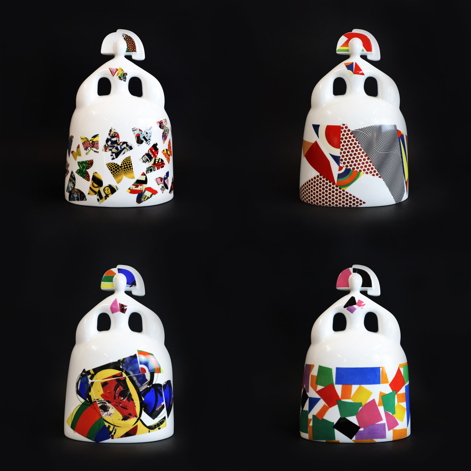 The porcelain medium deepens the dialogue: its refinement and fragility resonate with courtly imagery, while the glazed surfaces become a canvas for Valdés’s painterly citations. Presented as a set, the four figures form a compact court: identical in silhouette yet distinguished by their decorations. Taken individually, each figure offers a singular encounter; together, they invite comparison, memory, and reflection. Valdés’s decorative approach amplifies this dialogue: the surfaces of the Infantas draw freely from the icons of modernity, echoing the vibrant gestures of Joan Miró, Willem de Kooning, Sonia Delaunay, Fernand Léger, Roy Lichtenstein, and even Valdés’s own earlier work. These references layer contemporary artistic history atop the Baroque silhouette, creating a compact court in which past and present converse, where history is both honored and reimagined, and where each decoration adds a subtle, resonant meaning to the figure it adorns. |