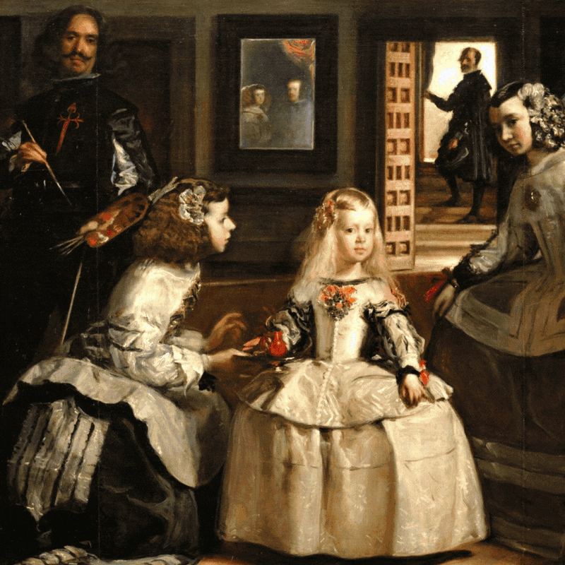 Diego Velázquez’s (1599-1660) Las Meninas (1656) resists a single reading: portrait and mise-en-scène, painting and mirror, painter and spectator all fold into one another. At its centre stands the Infanta - the sovereign’s daughter - poised and luminous; around her, attendants, portraits, and an open doorway complicate who is looking and who is looked at. For centuries the painting has been a stage for questions about authorship, presence, and the relationship between image and power.