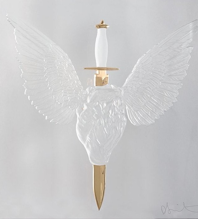 With Eternal Prayer (Clear/Gold) (2017), Hirst reinvents the pierced heart, one of the most intimate Christian icons: the Sacred Heart of Jesus, symbol of divine suffering and mercy. Here, the heart becomes contemporary iconography, stripped back to geometry and tension. It’s still a centre of feeling. But there’s no blood, no flames, no sentiment. Just transparency, precision, gold. The pain is there but, it’s stylised and controlled.